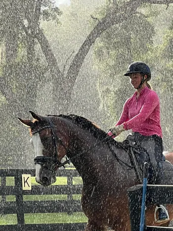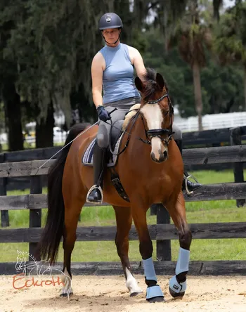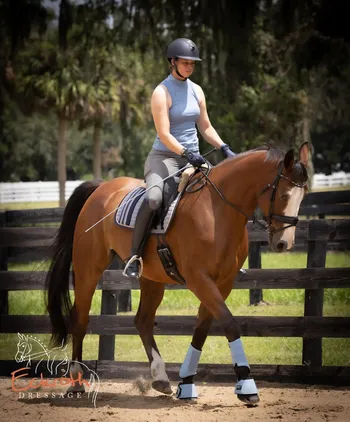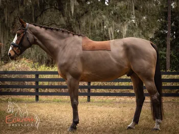 Fred started out his career as a jumper, which he willingly and succefully did, but his heart wasnt in it, so his people kindly decided to switch him to dressage. He is schooling pieces of 3rd level and is competing 1st level to start off his dressage show record. He is forgiving and steady, not overly spooky but does notice changes around his home arena. Passed his PPE for import and has no health concerns nor special maintenance needs.